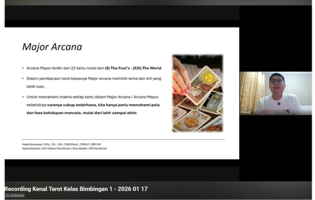 Tarot adalah bahasa simbol yang bisa dipelajari siapa saja — dengan pendekatan psikologi simbol yang logis dan terstruktur.